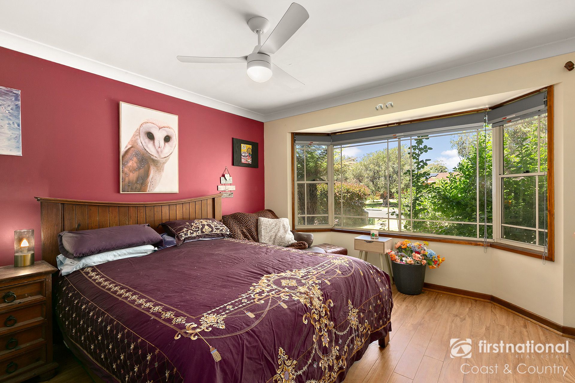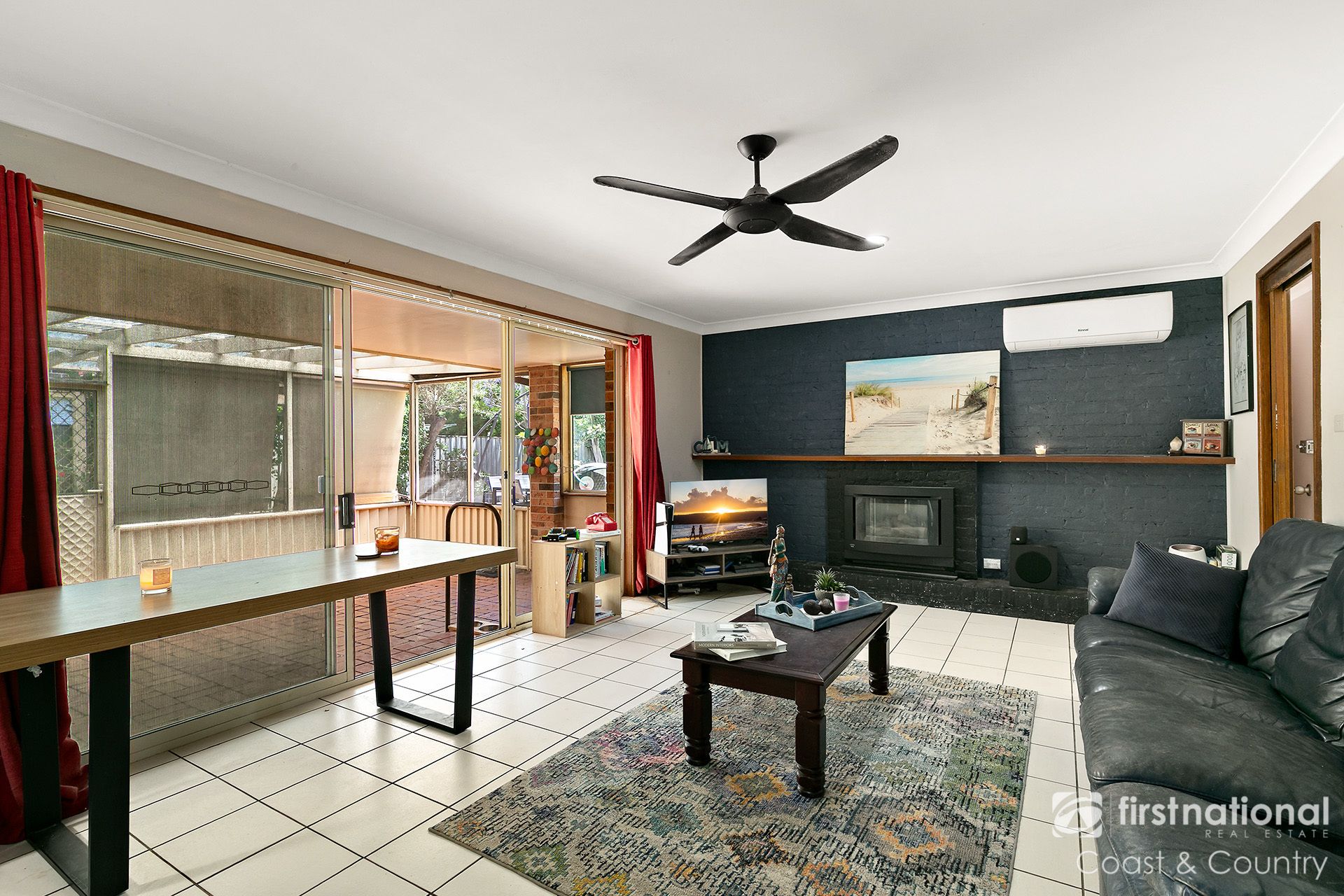 At the heart of the home is the light-filled open-plan kitchen, living and dining area, complete with air conditioning, ceiling fans and a gas fireplace for year-round comfort. From here, step into the enclosed sunroom, the perfect spot for casual dining, morning coffee or enjoying the garden outlook in any weather.
