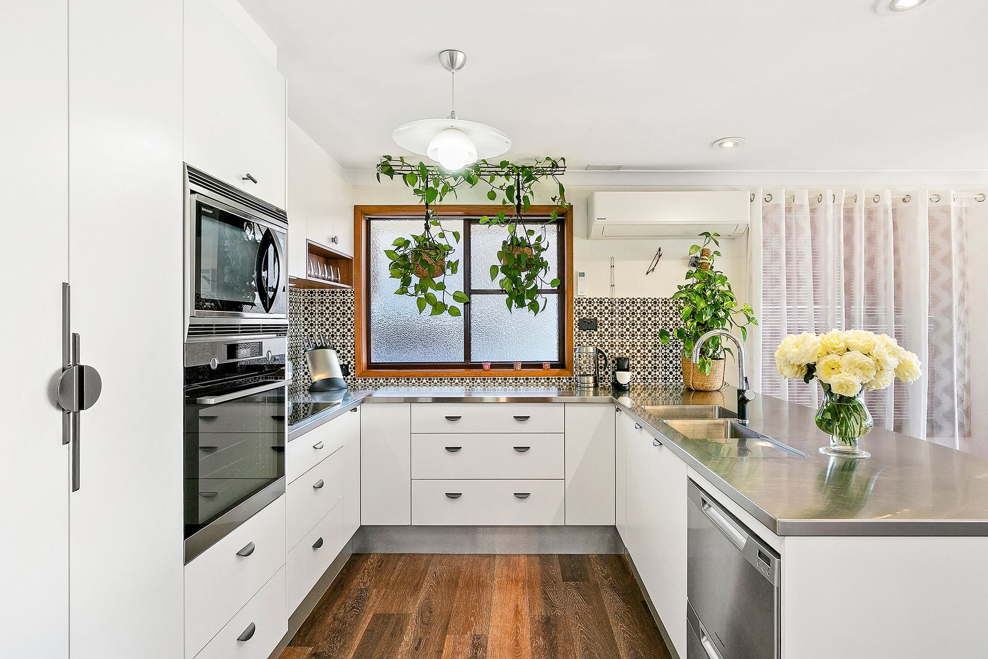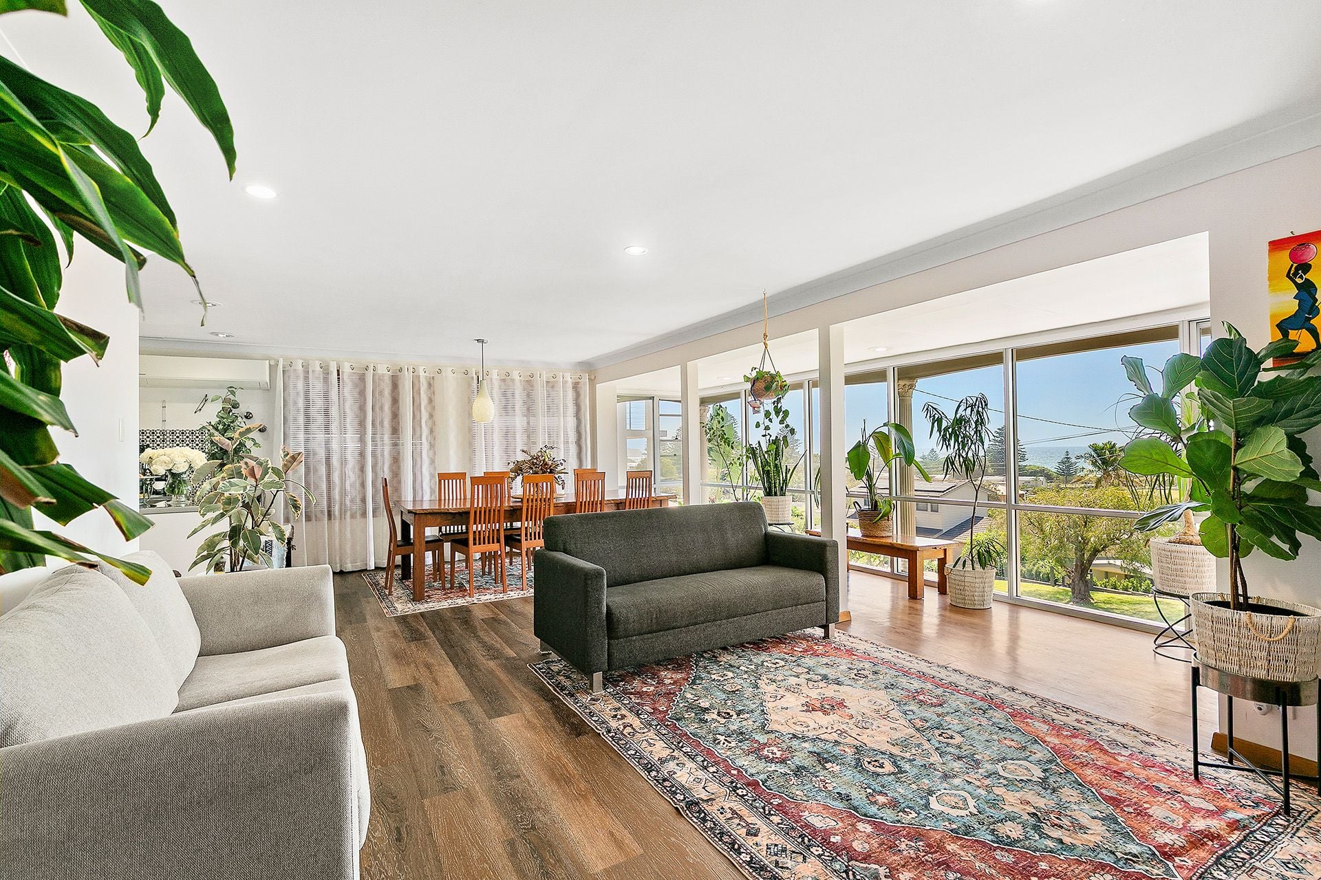 Step past the beautifully established front gardens and into the expansive open-plan living area, where large windows frame the coastal panorama. The recently renovated contemporary kitchen features sleek stainless-steel benches, induction cooking and a steam/pyrolytic oven-perfectly designed for both everyday living and effortless entertaining.