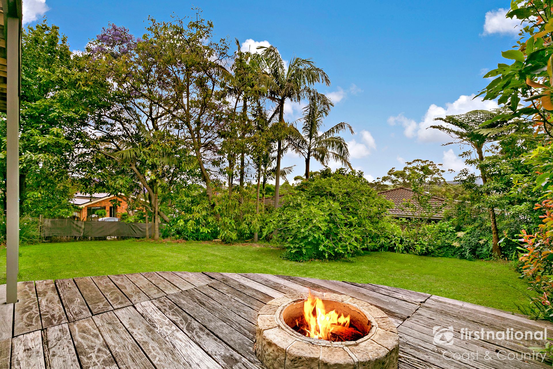 The entrance to the home features a sandstone and timber facade and a unique custom door. Inside, the sweeping foyer features timber detailing full of character. On this level is a large bedroom or rumpus room with its own wood fireplace – an ideal teenage retreat, guest room or home office – a very generous single lock-up garage with internal access, and an expansive adjoining storage area that could be transformed into additional accommodation or living space (STCA) which opens out to a generous leafy backyard with timber deck and firepit.