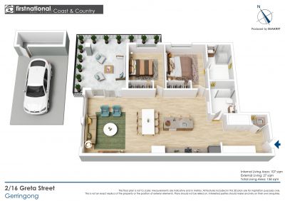 Inside, quality finishes and thoughtful details create a light-filled, inviting atmosphere. Both bedrooms are generous in size, with the main bedroom featuring an ensuite. Tiled flooring in high-traffic areas ensures durability, while soft carpet in the living spaces adds comfort. Cleverly designed storage solutions throughout the apartment provide ample space to keep everything organised and clutter-free.