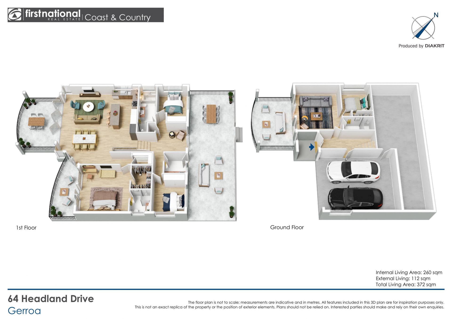 Separate living rooms on each level both feature covered outdoor entertaining areas and capitivating ocean views, as does the master bedroom with ensuite, walk-in-robe and a private ocean balcony. A north-facing backyard with northerly aspect offers plenty of sun and privacy, nestled alongside a pastoral hillside with the occasional visit from wandering cattle.