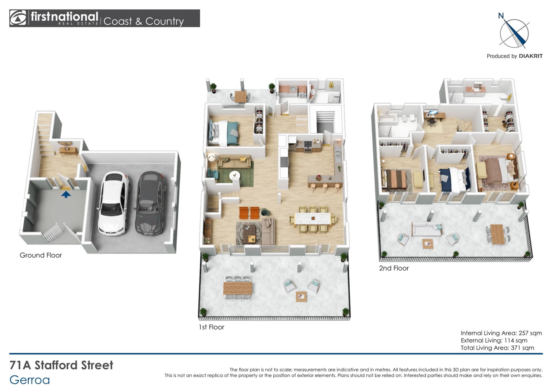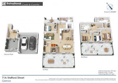 The main level features a generous open-plan kitchen, dining and living space with stunning ocean views which opens onto a huge adjoining balcony, as well as a sitting room, bedroom, bathroom and laundry. Upstairs are three more bedrooms, each with truly jaw-dropping coastal views and their own access to a second spacious balcony. There are two more bathrooms and a study nook on this level, with the master bedroom including a walk-in robe and ensuite. A double garage and two additional parking spaces complete this fabulous package.