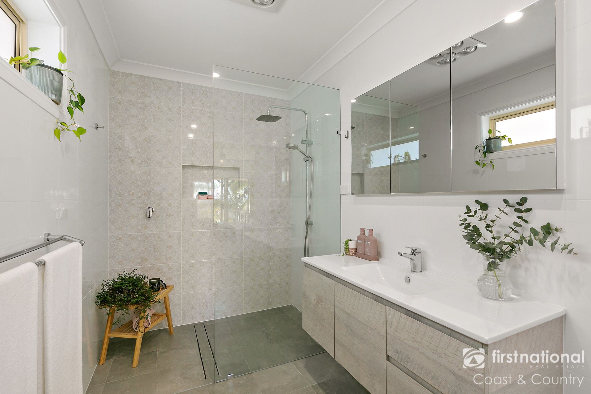 Upstairs, natural light floods the home with a beautiful northern aspect. A second living area connects to five oversized bedrooms, each with built-in robes. Three of these bedrooms open directly onto a balcony, capturing spectacular views across the pool and gardens, while also taking in sweeping escarpment vistas and views down Minnamurra River. The master bedroom is a true retreat, featuring a newly renovated ensuite and an expansive walk-in wardrobe. A stylishly renovated main bathroom with double vanity and a separate toilet completes the upper level.
