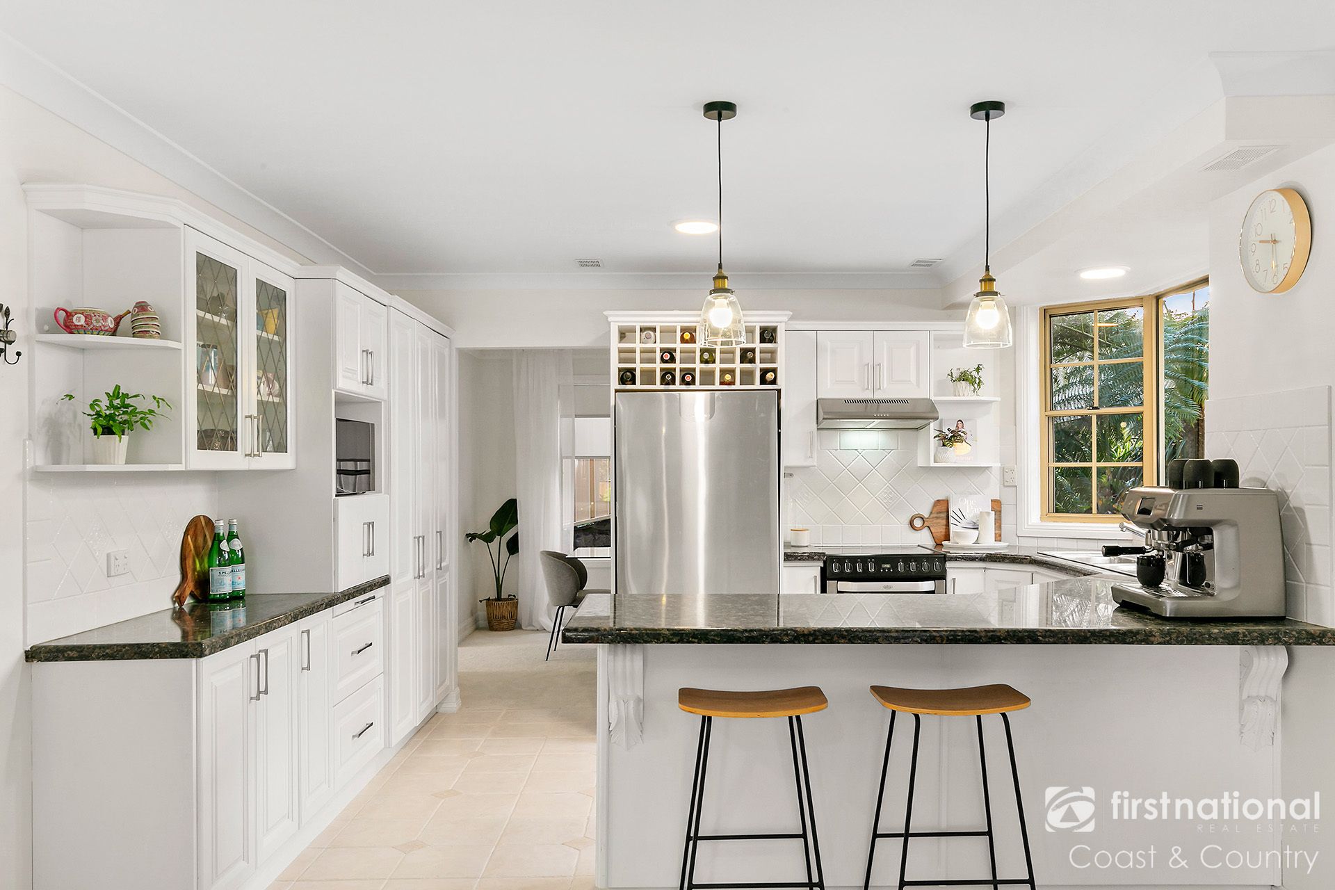 Step inside to a peaceful retreat. At the front of the home, the formal lounge and dining areas open onto a balcony that overlooks the shimmering pool and gardens. Flowing seamlessly through the home, you'll find an oversized kitchen offering granite benchtops, an abundance of storage, and a spacious layout that opens into the informal dining and large living room. This space is warmed by a wood burning fireplace, making it perfect for cosy winter days. A dedicated home office and internal laundry complete the lower level, offering flexibility and functionality.