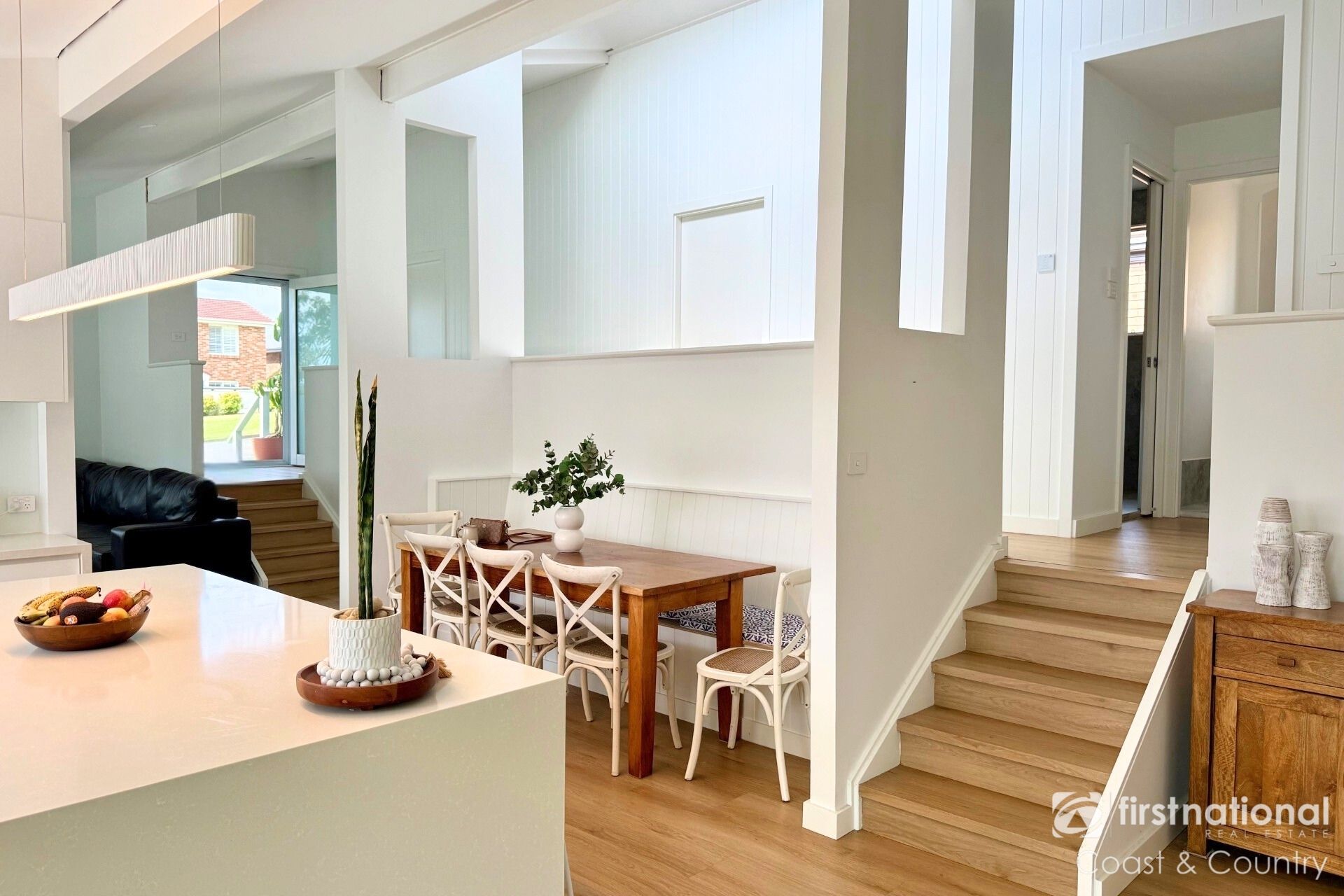 Step inside to a warm and welcoming split-level design featuring soaring cathedral ceilings and a spacious open lounge flowing through to the fully renovated kitchen and dining area. This level also includes a fourth bedroom and stylish new laundry.