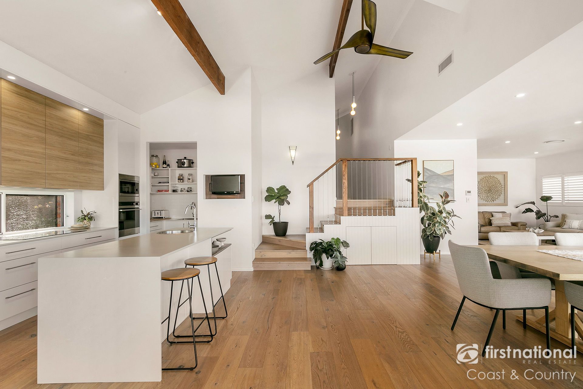 The open-plan living spaces are thoughtfully designed to maximise natural light and capture the stunning vistas, making every moment feel like a retreat. The modern kitchen is a chef's delight, featuring stone benchtops, a butler's pantry, and a breakfast bar. Multiple entertaining zones, including spacious balconies and a terraced backyard, offer the perfect settings to relax, entertain, or simply soak in the sensational views.
