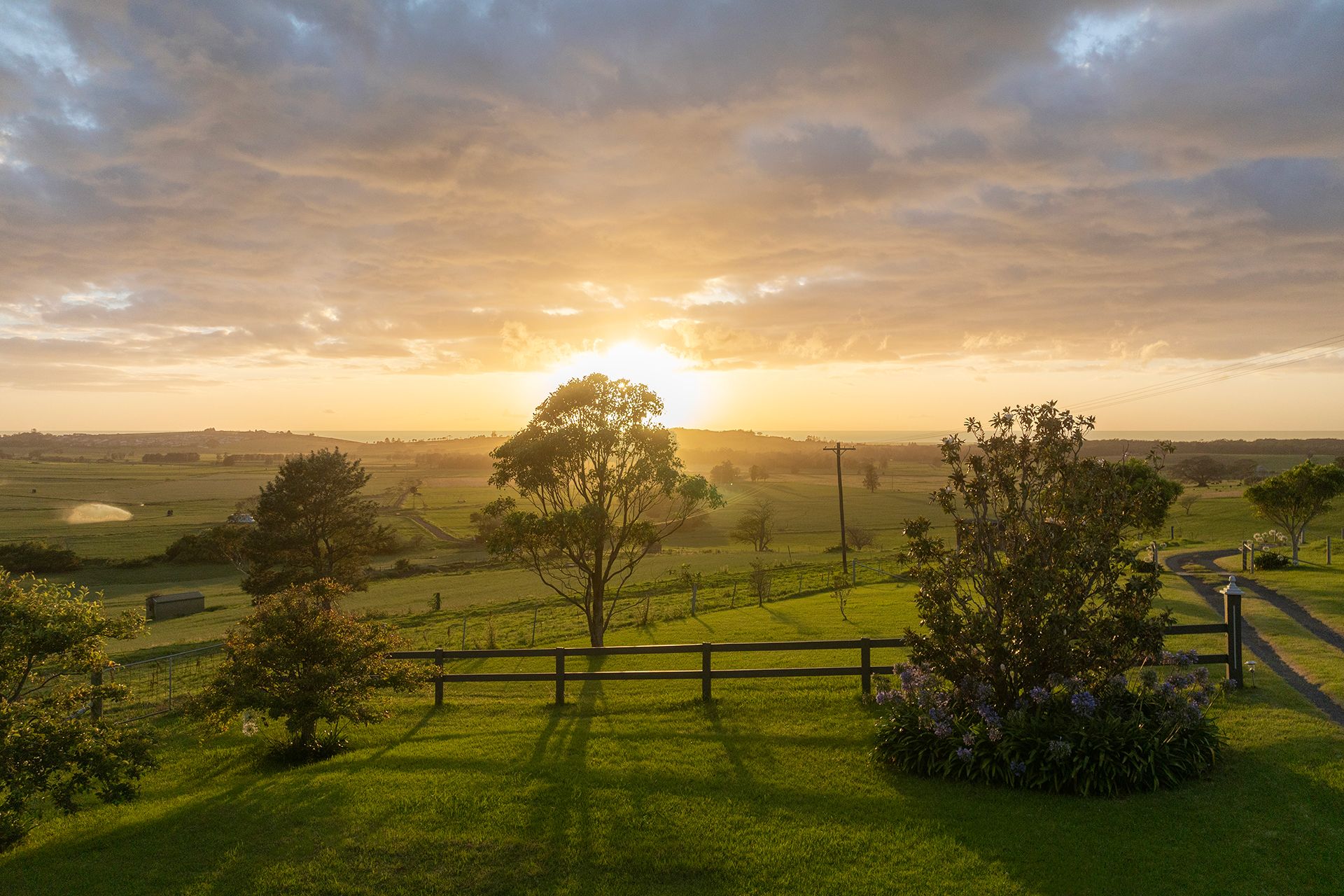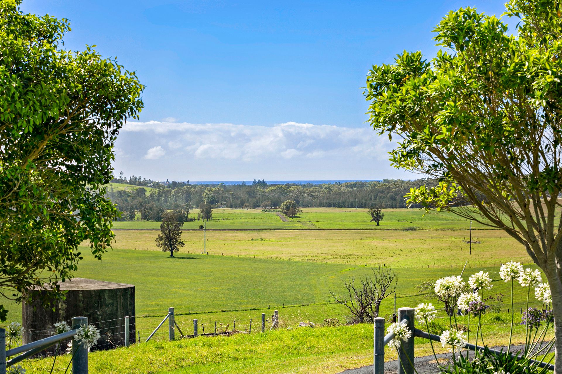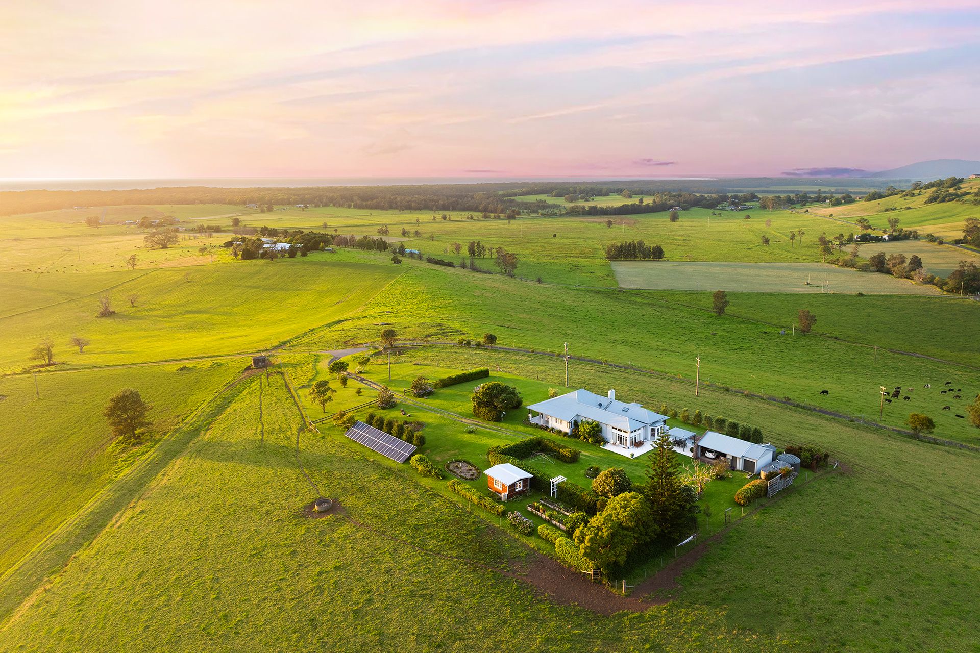 The level one-acre allotment, just minutes from the seaside village of Gerringong, rests on the crest of a gently rising hill and benefits from cool coastal breezes through summer with elevated views over the undulating pastures of Toolijooa. The stunning 360-degree vista stretches south to Coolangatta Mountain, east to the Pacific Ocean and west to the escarpment, with spectacular sunrises and sunsets daily.