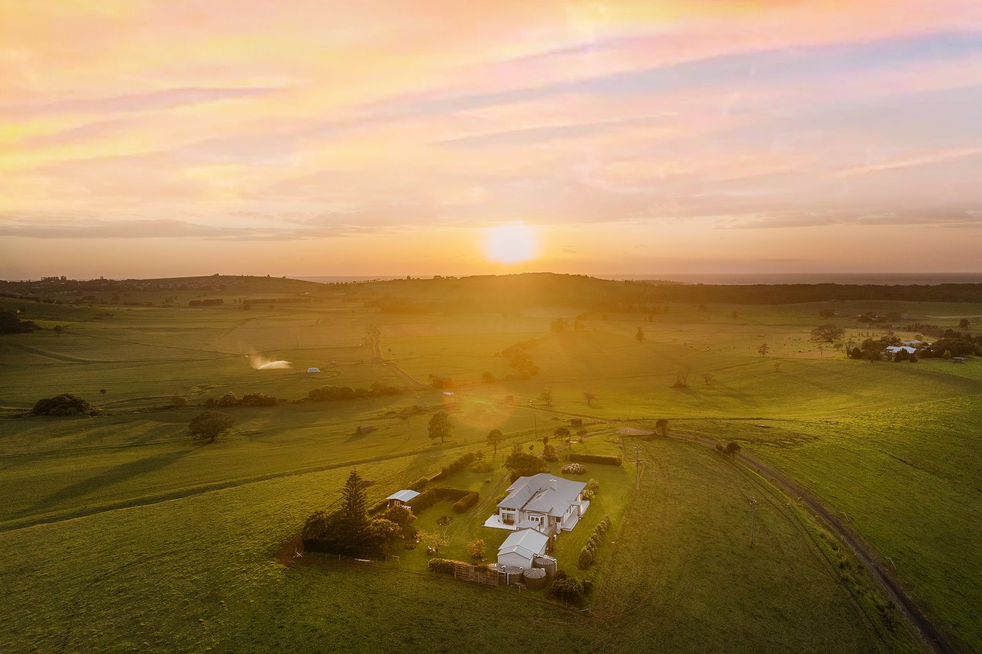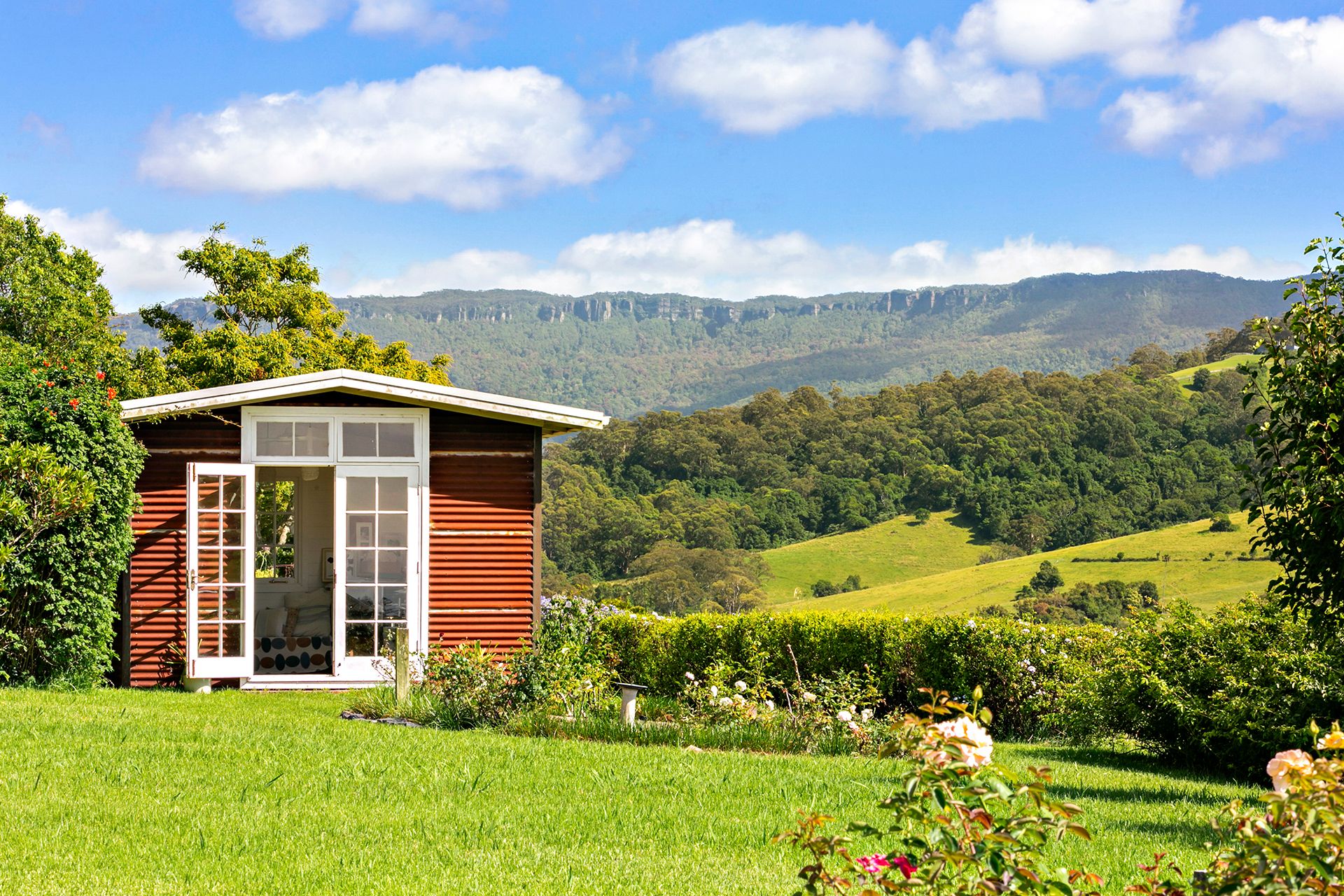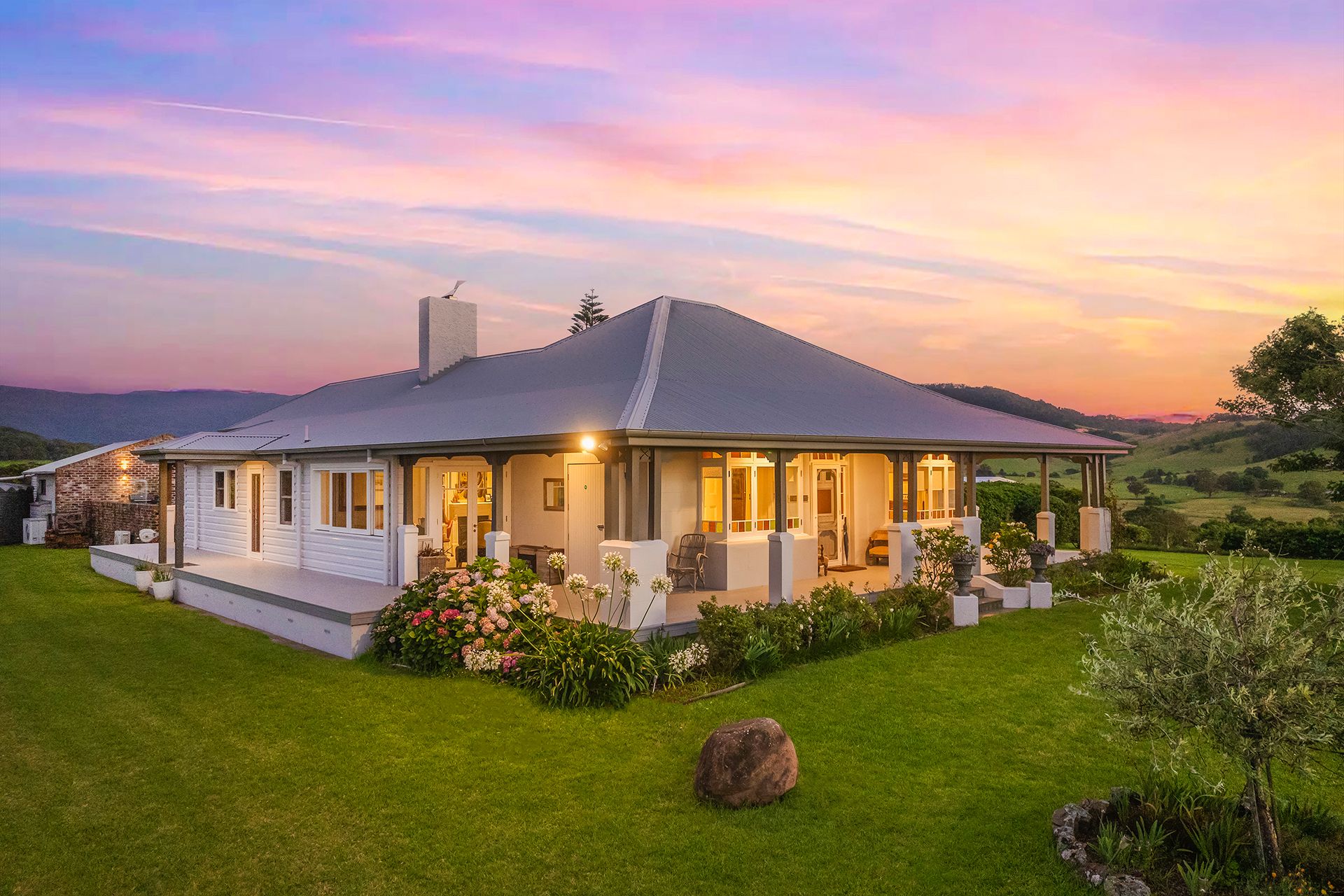 The level one-acre allotment, just minutes from the seaside village of Gerringong, rests on the crest of a gently rising hill and benefits from cool coastal breezes through summer with elevated views over the undulating pastures of Toolijooa. The stunning 360-degree vista stretches south to Coolangatta Mountain, east to the Pacific Ocean and west to the escarpment, with spectacular sunrises and sunsets daily.