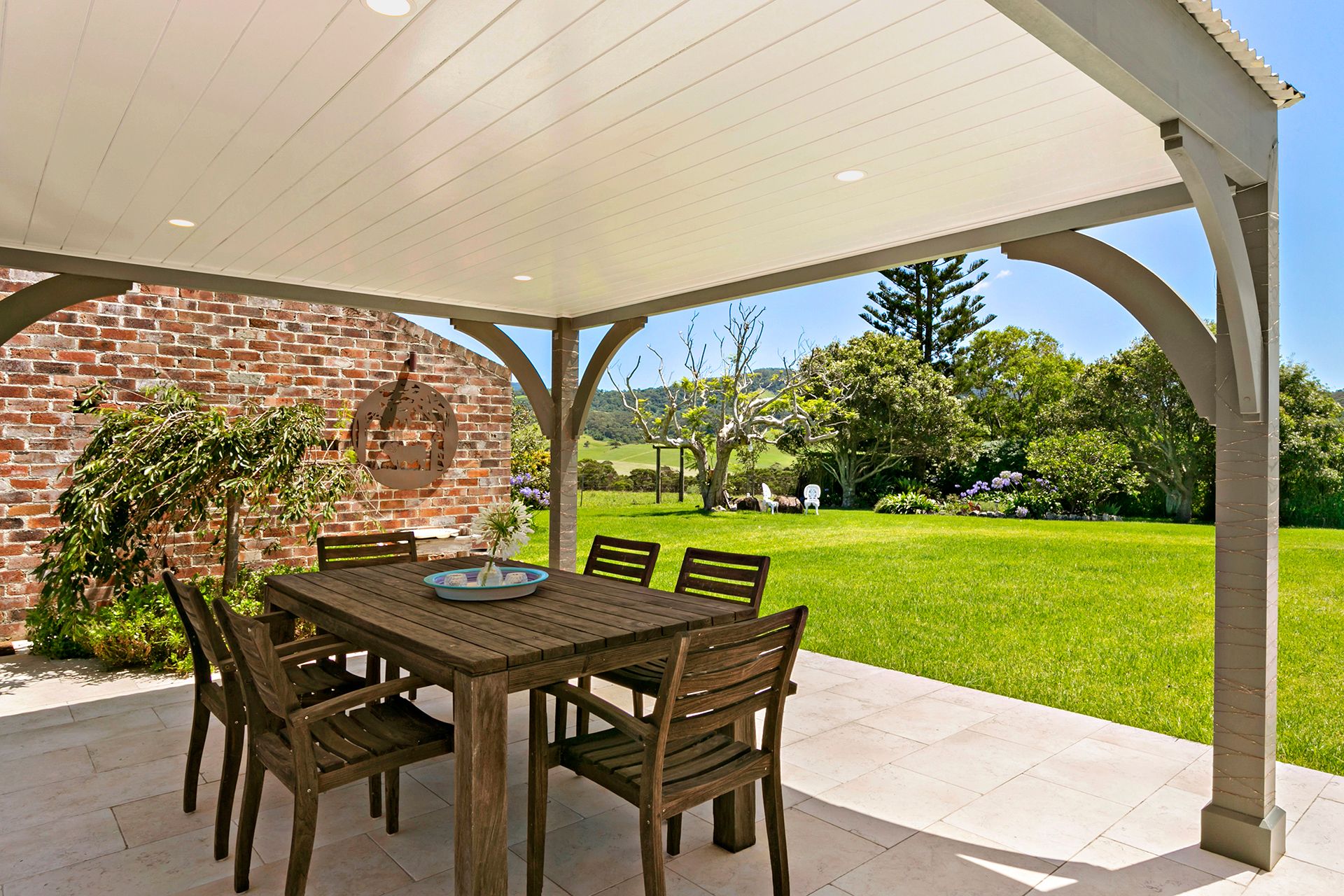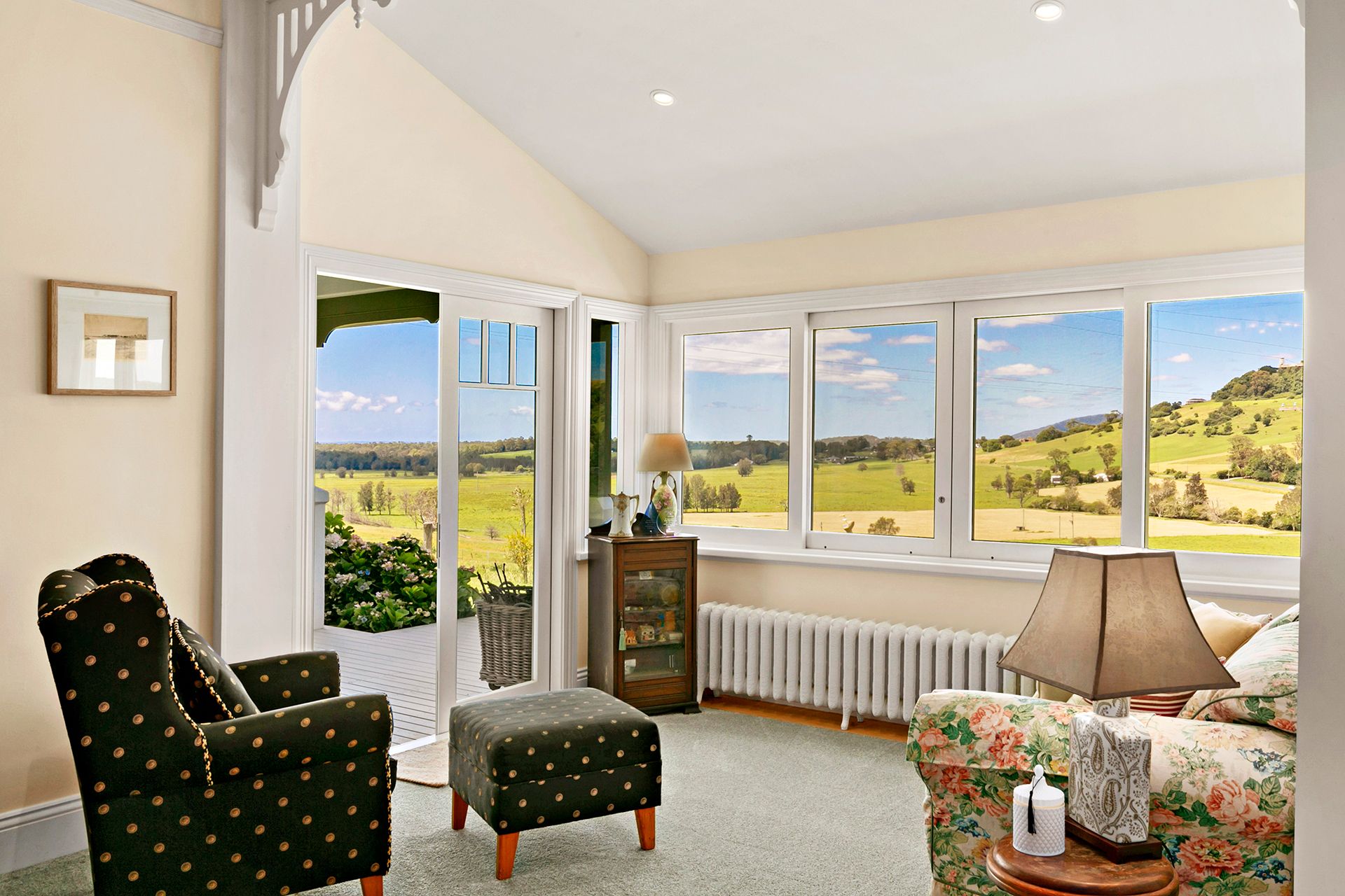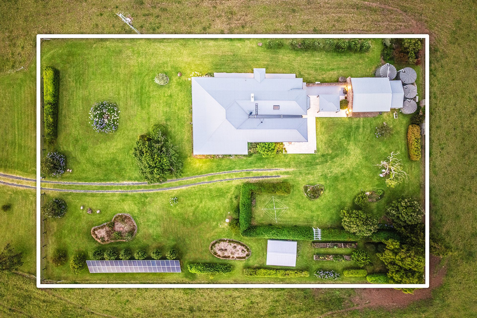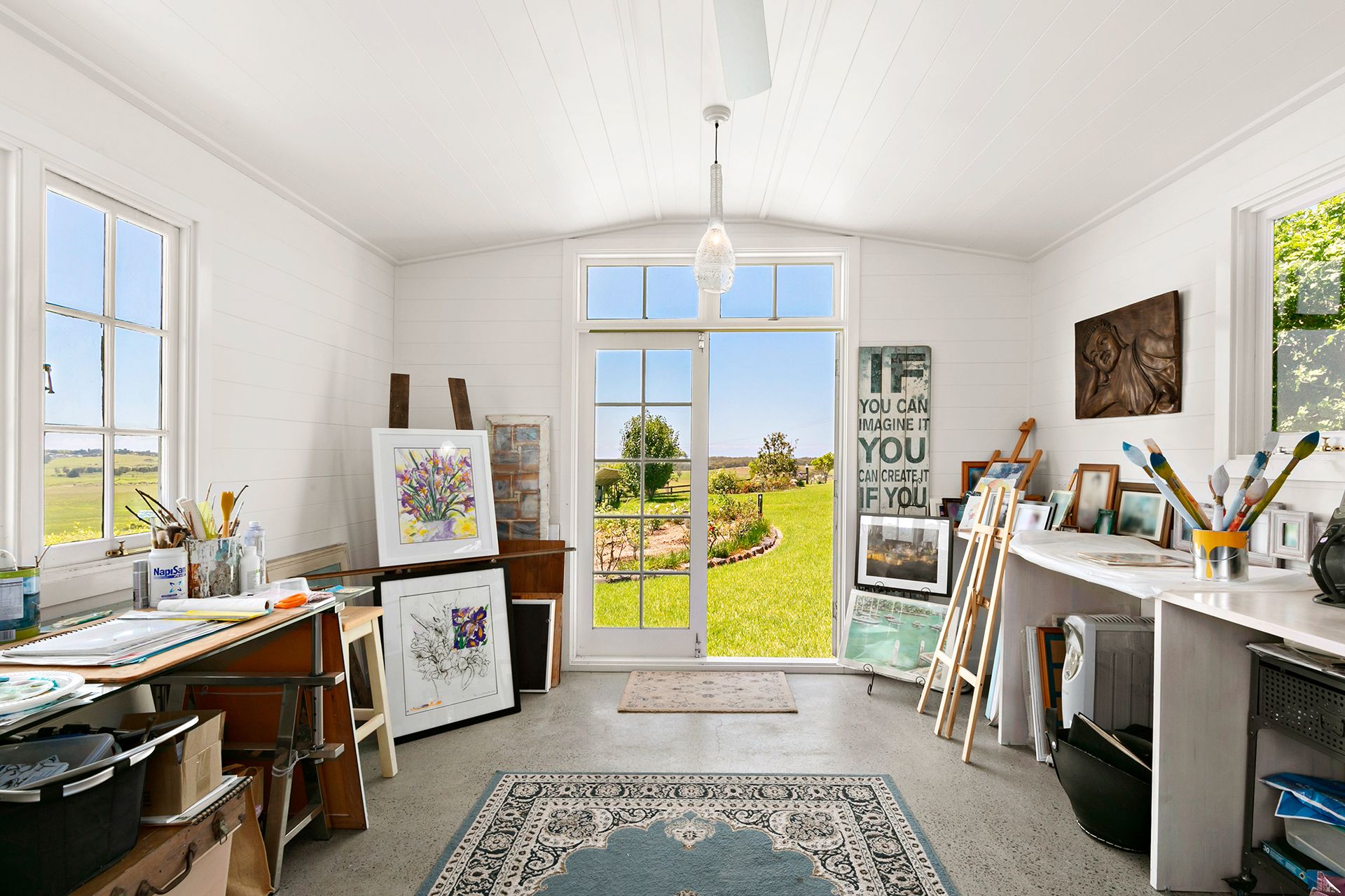 The spacious open-plan kitchen, dining and living area is bathed in natural sunlight and opens onto a private covered entertaining area with stunning views of the surrounds. The expansive grounds feature lovely gardens with flower beds, fruit trees and a vegetable patch, as well as a double garage, storage shed and a separate studio all surrounded by lush grazing land.
