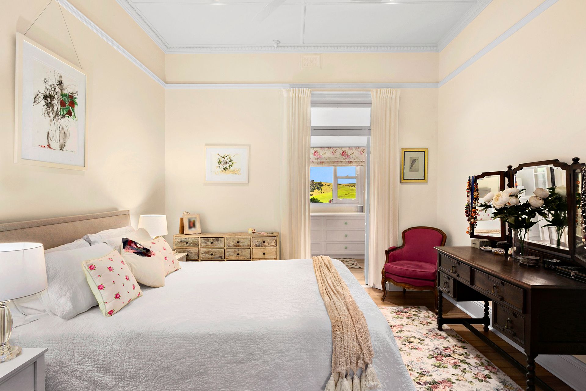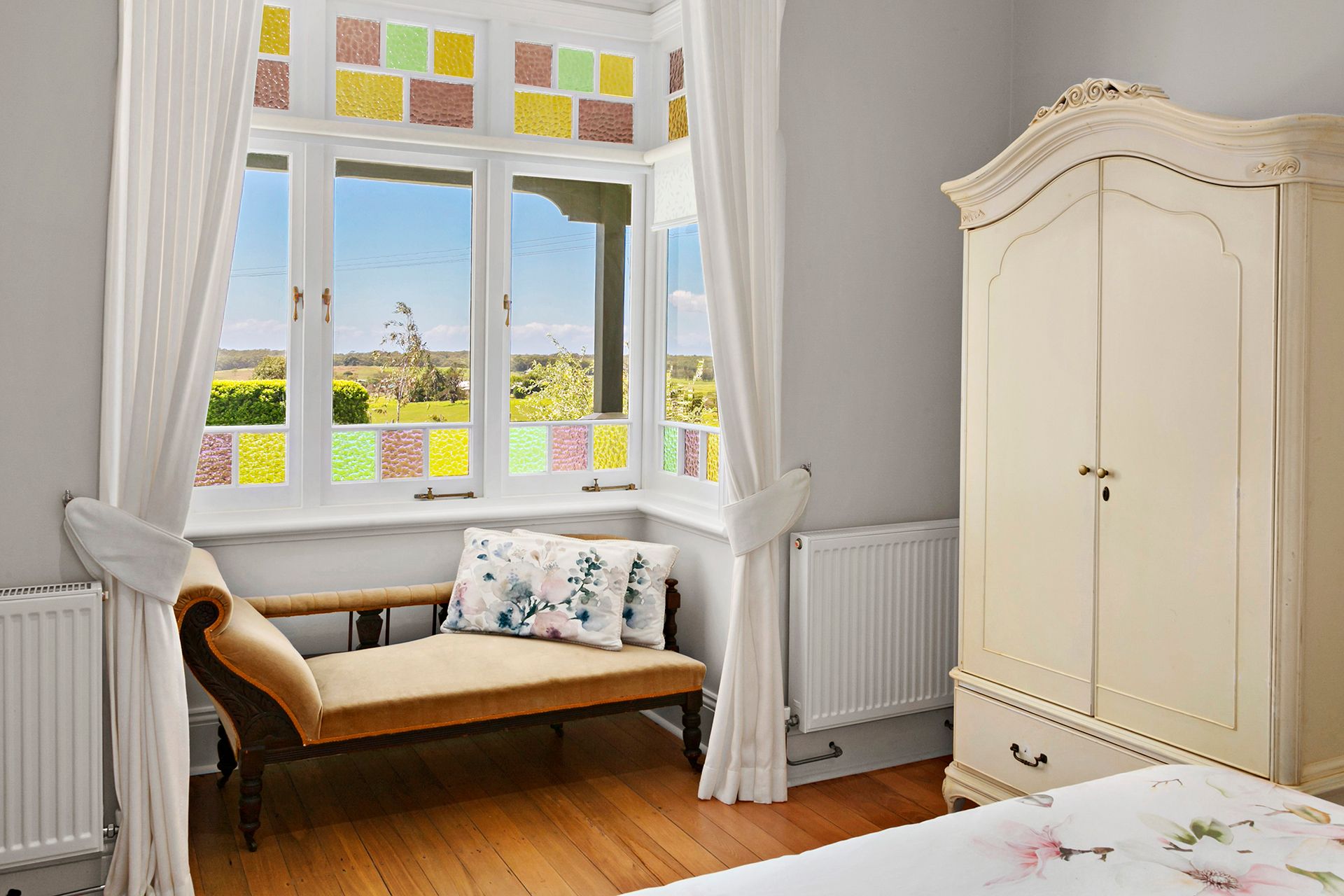 The homestead's original features have been lovingly preserved including beautiful stained glass bay windows, timber floors, 13-foot ceilings and a cosy wood-fire hearth. A tasteful expansion to the rear has been thoughtfully designed to complement the existing home, completed to the highest quality with Victorian Ash timber floors, vaulted ceilings, and stylish modern kitchen and bathrooms.
