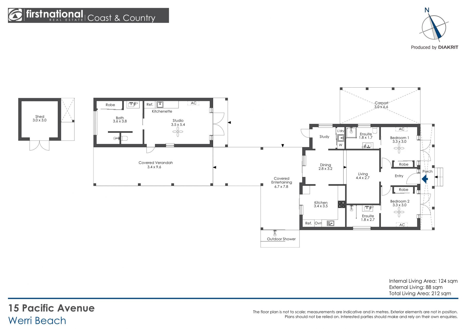 The main cottage features two bedrooms, kitchen, dining, living, study and laundry, with a fully equipped studio at the rear. Connecting the two is a large undercover entertaining area and generous backyard, providing plenty of space to relax and enjoy the outdoors. On return from the beach you can rinse off under the outdoor hot shower.
